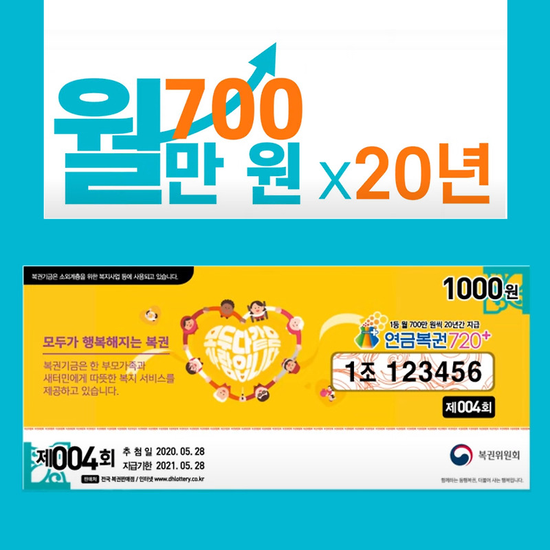 연금복권 구매함 실수령액390 받을 생각에 벌써 지림. 연금복권720+매주 목요일 추첨 700만원씩 20년 지급. 연금복권은 전국 8000여 복권 판매점 뿐만 아니라 동행복권 홈페이지에서도 구매가 가능하다. 참고로 위 표의 연봉실수령액은 참고 예시일 뿐 회사마다 조금씩 차이가 날 수. 연금복권520은 2011년 7월 6일부터 2020년 4월 29일까지 대한민국의 복권위원회가 매주 1회 발행하였던 추첨식 복권이다.